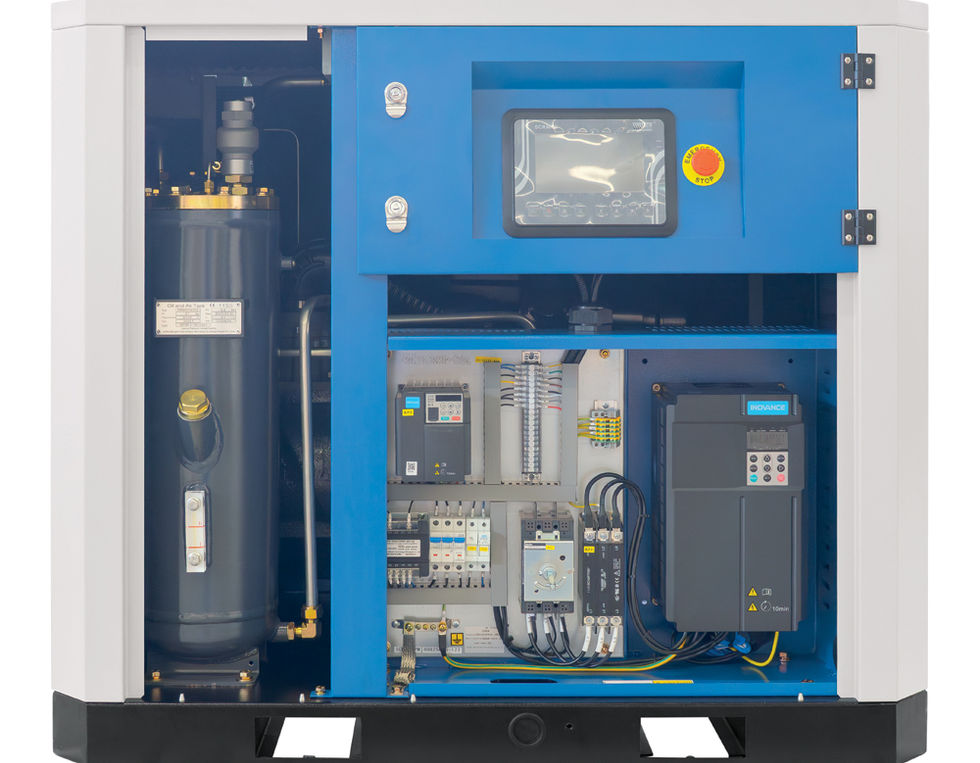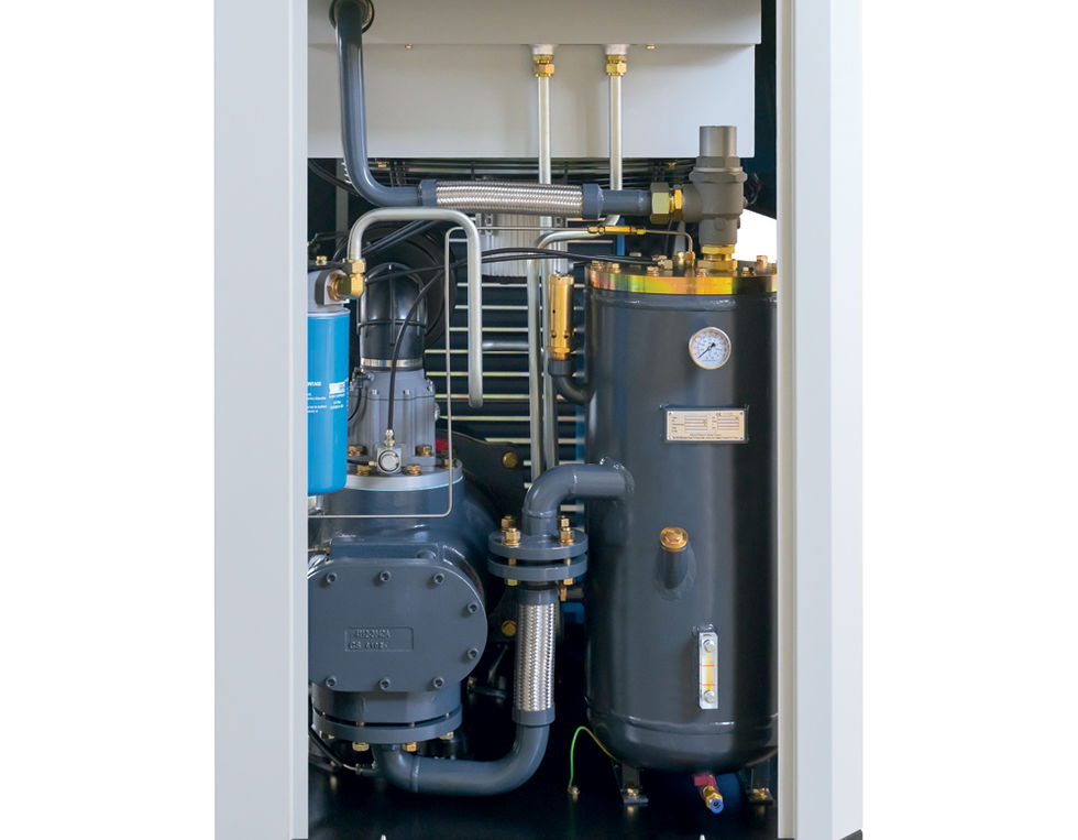 Vysoko efektívne olejom mazané skrutkové kompresory s príkonom od 15 do 45 kW tlakové verzie 7 - 8 - 10 bar bezstratový priamy pohon 1:1 olejom chladený motor s efektivitou IE4 a permanentnými magnetmi nízkoúčinný skrutkový blok plynulá regulácia otáčok pomocou frekvenčného meniča